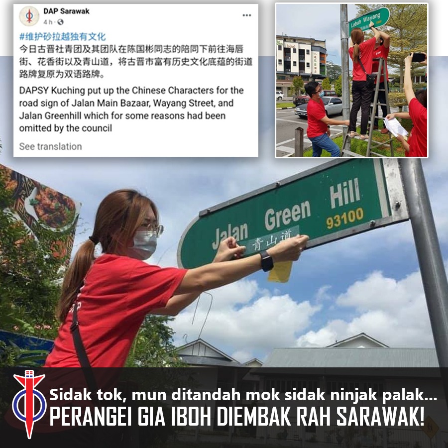Tanpa kebenaran PBT, ultra kiasu sengaja mencabar kedaulatan negara dan pribumi. Atas dasar apa nama jalan perlu kepada bahasa Cina. Sarawak bukan asal usul negara China. Bangsa Cina adalah pendatang dari segi asal usul dan sejarah mana-mana negara di Alam Melayu.